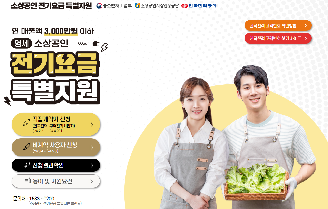 Áö¿ø °ü·Ã ¹®ÀÇ´Â ¼Ò»ó°øÀÎÀü±â¿ä±ÝƯº°Áö¿ø Äݼ¾ÅÍ(¢Ï 1533-0200)·Î ÇÒ ¼ö ÀÖÀ¸¸ç, Àü±â¿ä±Ý Â÷°¨ ¹× °è¾àÁ¾ °ü·Ã »çÇ×Àº Çѱ¹Àü·Â Äݼ¾ÅÍ(¢Ï 123)¸¦ ÅëÇØ È®ÀÎÇÒ ¼ö ÀÖ´Ù.